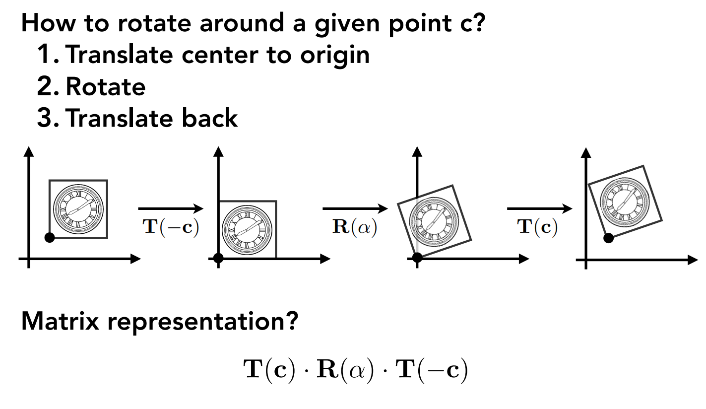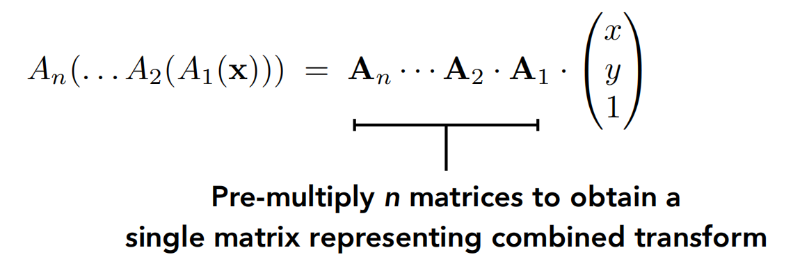 简单计算一下就知道结果是正确的,齐次坐标的优雅再次体现:一个矩阵就能表示任何线性变换和平移的组合