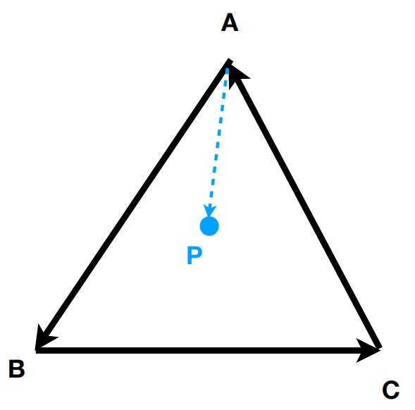于是进一步拓展:如果AB与AP的叉积,BC与BP的叉积,CA与CP的叉积,这三个结果同号,那么P位于三角形内部