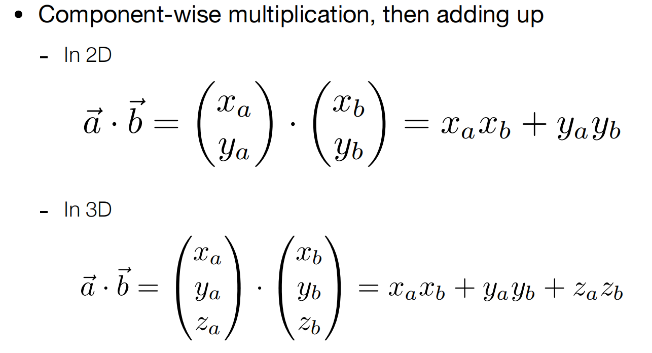 注意,点积没有结合律,也就是说点积是只存在于两个向量之间的运算。不能随意结合