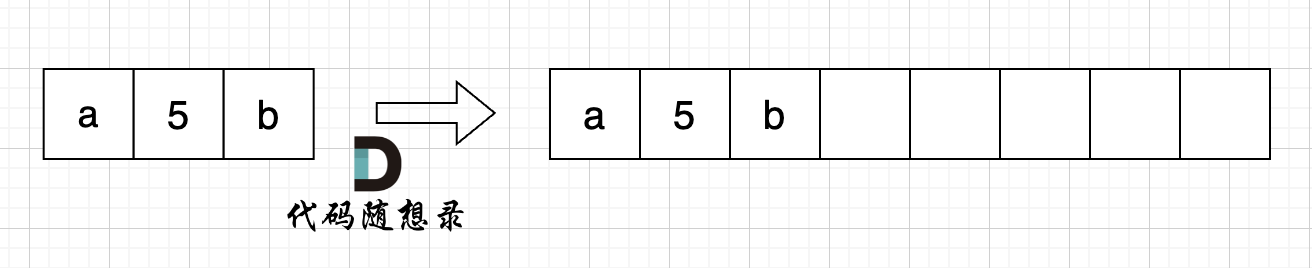 s.resize(s.size() + count * 5) //此处乘5是因为number占6个元素,再减去原来的数字所占空间从后往前的巧妙遍历: